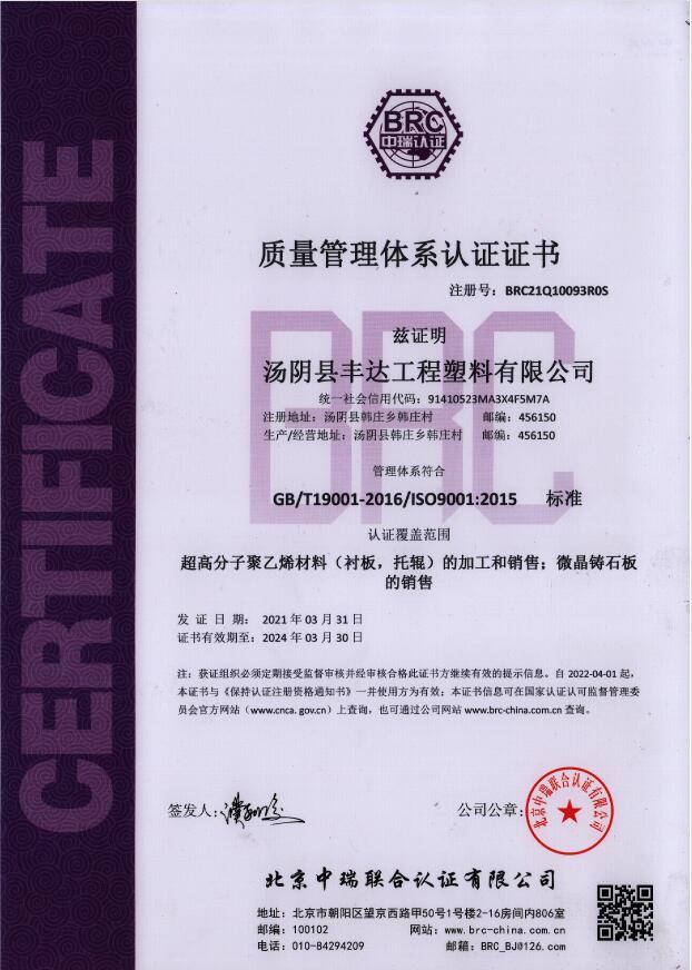 質量管理體係認證證書