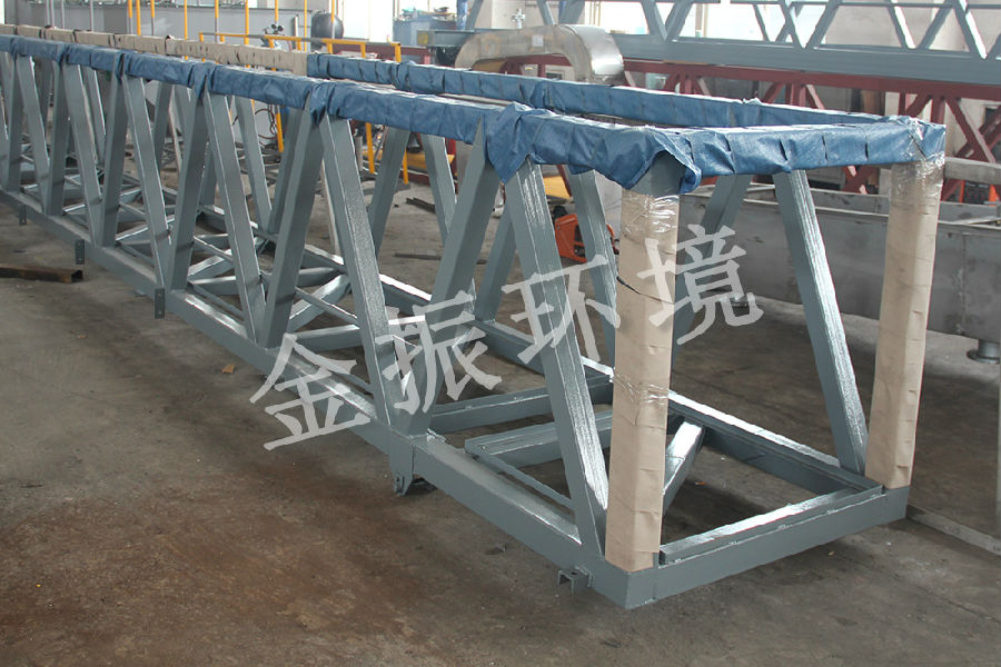 周邊傳(chuán)動係(xì)列吸(xī)泥(ní)機用於汙水處理廠圓(yuán)形二次(cì)沉(chén)澱,將沉(chén)降在池底上的汙(wū)泥刮(guā)集至一組(zǔ)沿鬥徑方向布(bù)置的吸泥管管(guǎn)口,再通(tōng)過中心(xīn)排泥管排出,以便汙泥回流或(huò)濃縮脫水,並將池麵浮渣刮集,通過浮渣漏鬥排出池外。