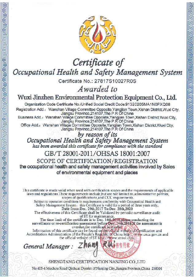 職業健康安全管理體(tǐ)係認證證書