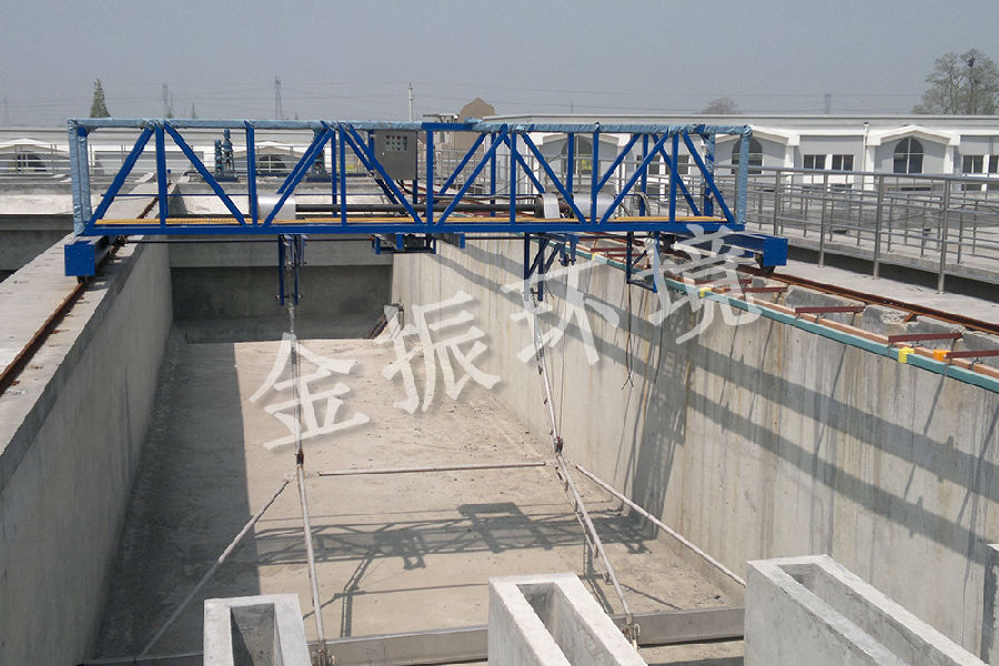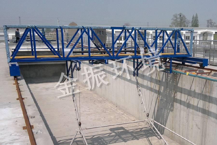 行(háng)車式(shì)抬耙刮泥機適用於汙水處理廠平流式沉澱池(chí)。其主(zhǔ)要功能是(shì)將(jiāng)沉(chén)降在池底的汙泥刮集(jí)至積泥槽,以便(biàn)汙泥回流或(huò)濃(nóng)縮脫水,並將水麵浮渣(zhā)撇向集渣鬥(如有浮渣的話),通(tōng)過浮渣漏鬥排出池外,以便進一步處理。運行形式是邊運行邊吸泥。
