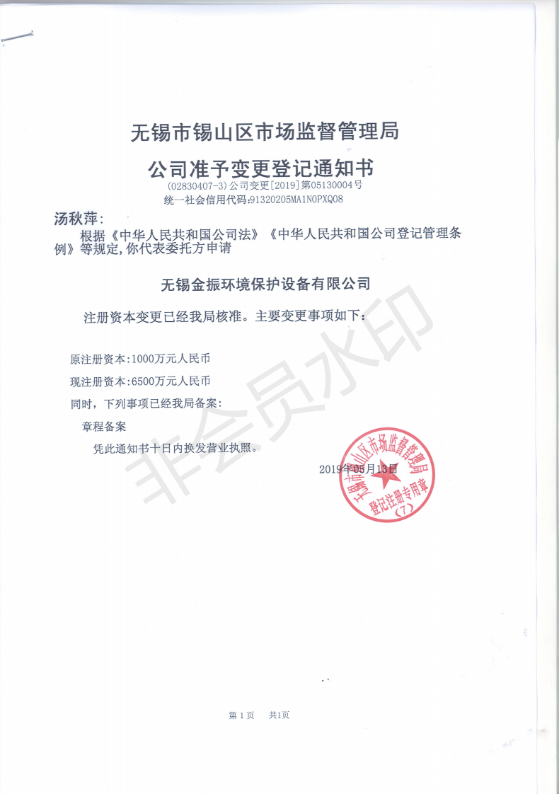 1、公司原注冊資本:1000萬元人民幣,現(xiàn)變更為:6500萬元人民幣。